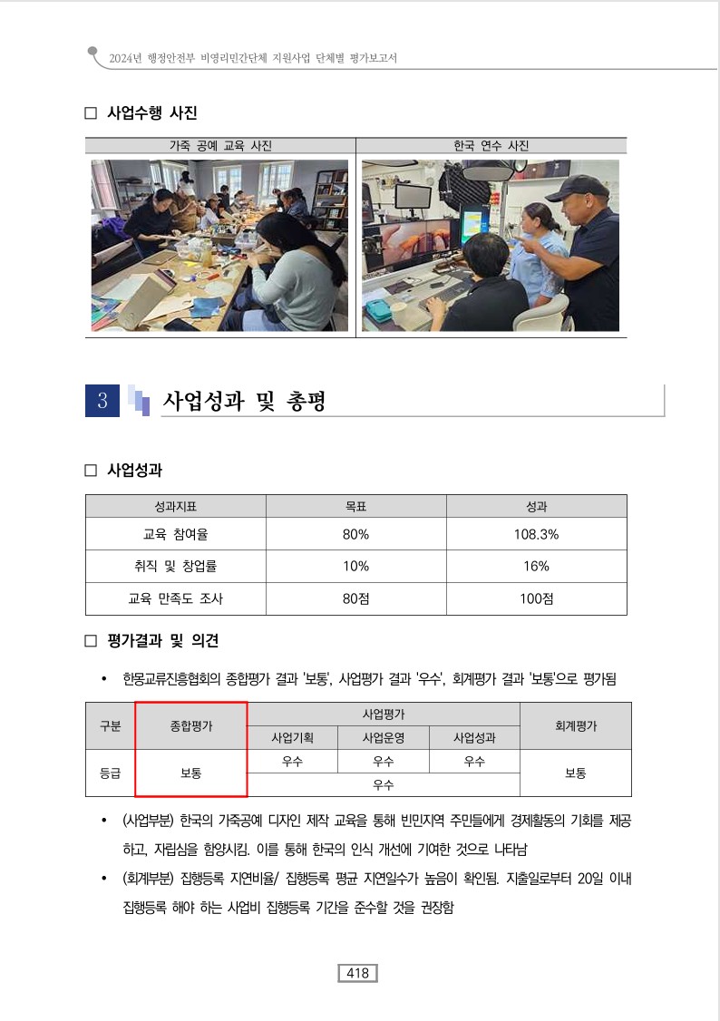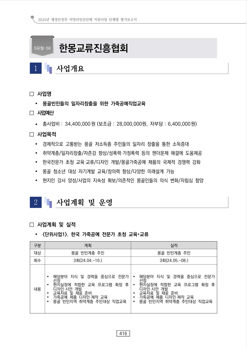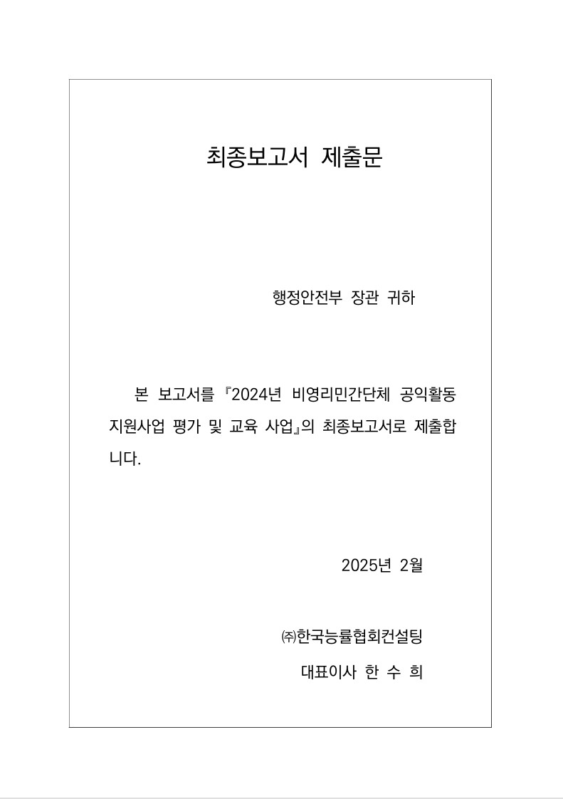 | Á¦¸ñ : 2024³â ºñ¿µ¸®¹Î°£´Üü °øÀÍȰµ¿ Áö¿ø»ç¾÷ Æò°¡º¸°í¼ |